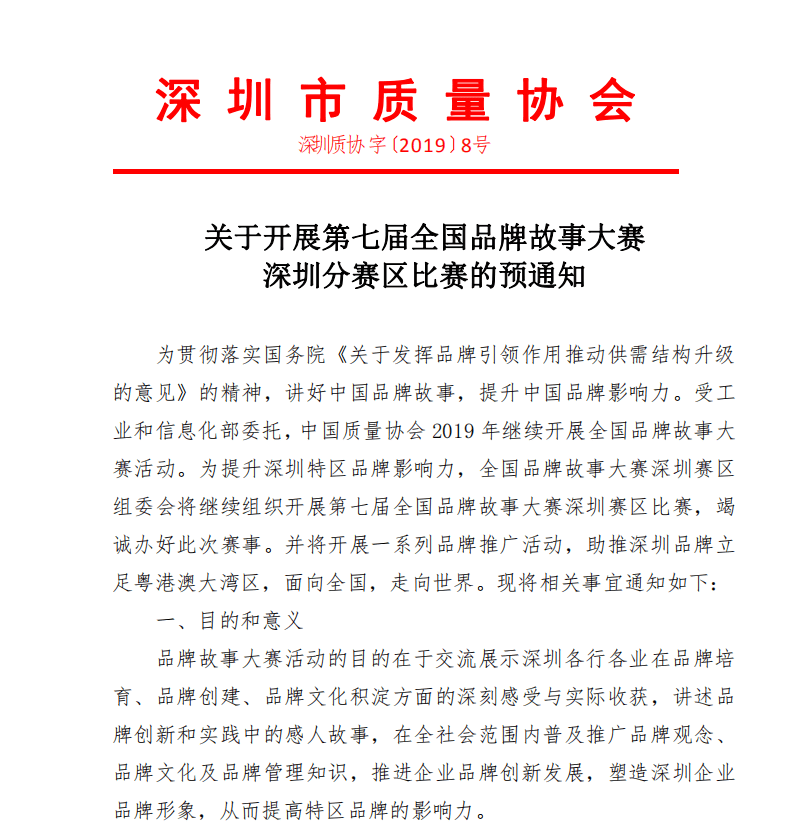 关于开展第七届全国品牌故事大赛(深圳赛区)比赛的预通知