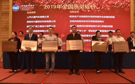 今年,在市工信局、市国资委的指导下,由深圳质协提供技术支持,我市2家企业——深圳市大疆百旺科技有限公司实施风险驱动的动态质量管理模式、深圳中广核工程设计有限公司应用人因绩效改善模型提升设计质量的经验入选2019年全国质量标杆。