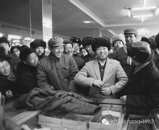 在经济改革中初尝甜头的中国人,开始接触到各种新鲜产品。最显著的变化就是衣着——习惯了黑蓝灰的中国人,开始尝试西装、夹克衫和牛仔裤。制衣企业在珠三角遍地开花。到了90年代,中国被称为“服装大国”。图为1985年,中国北方某城市,一名男子试穿西装。