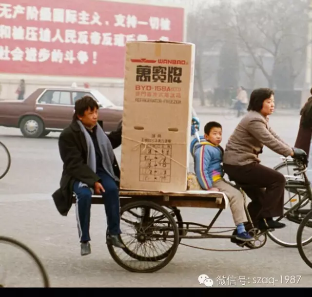 80年代至90年代,民营制造业崛起,外资制造业进入中国市场。此时老百姓的“三大件”也更新为电视机、洗衣机和电冰箱。1984年,国内数十家企业都从国外引进了电冰箱生产技术和设备,而海尔是其中最具长远眼光的一个——引进当时亚洲第一条四星级电冰箱生产线,并提出了更高的目标:“国门之内无名牌,要走出国门创名牌。”图为上世纪90年代,购买电冰箱的一家三口。