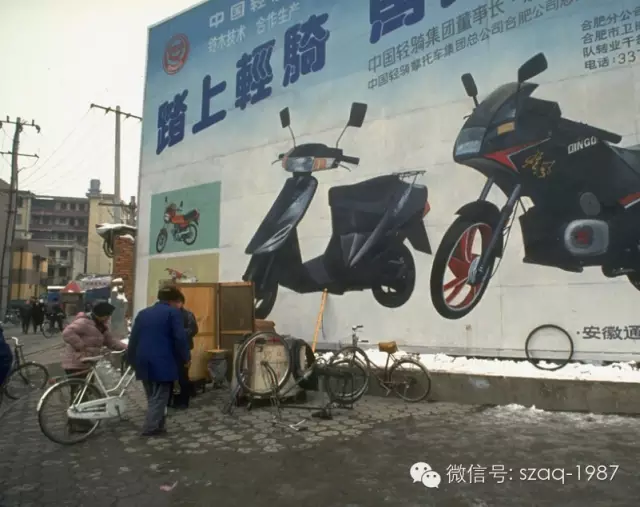 20世纪80年代初,摩托车开始进入初级发展时期。在重商的广州,摩托车渐渐成为发家致富的载体,广州大批“烧鹅仔”、“乳鸽仔”、“猪肉王”等个体户,开始成为摩托车“新贵”。自行车占绝对主流的年代,个体户驾驶的摩托车有如过江之鲫,穿梭于城市的大街小巷,成为当时广州街头出名的一景。图为1994年,安徽合肥,中日合资的摩托车是象征富裕身份的新玩意儿。