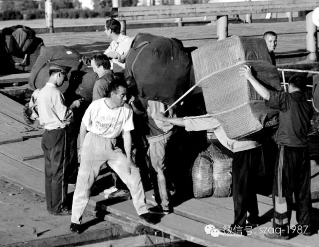 苏联解体之初,俄罗斯日用品严重匮乏,而中国的轻工产品具有明显优势。于是,许多“胆大”的中国商人携带着国产皮夹克、羽绒服,乘坐火车到俄罗斯销售。列车一进俄罗斯境内,每到一站,站台早就挤满了等待抢购的俄罗斯人,大量的货物,倾刻之间就一抢而空。而这些“人肉搬运”的中国人,当时有个流行的名字——倒爷。图为90年代,中俄边境的“倒爷”
