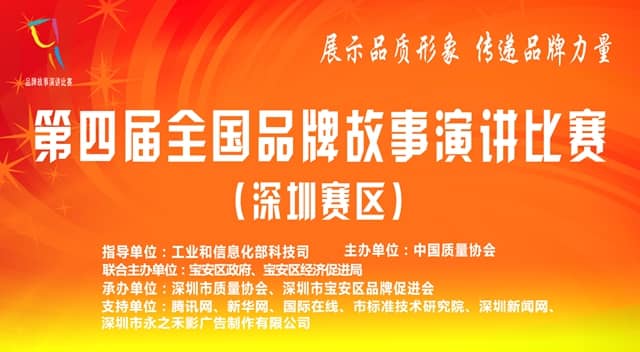 据了解,全国品牌故事大赛由工业信息化部科技司指导,中国质量协会主办的全国性品牌赛事,迄今已成功举办4届,以挖掘企业品牌故事为主线,搭建企业在品牌创建和品牌文化建设提供交流展示的平台。宝安区政府、宝安区经济促进局、市质量协会、宝安区品牌促进会是深圳赛区的承办单位,并得到了深圳经贸信息委、腾讯网、新华网、国际在线、市标准技术研究院、深圳报业集团、深圳新闻网、深圳微访谈、深圳市永之禾影视广告制作有限公司等48家单位、媒体和企业的支持。