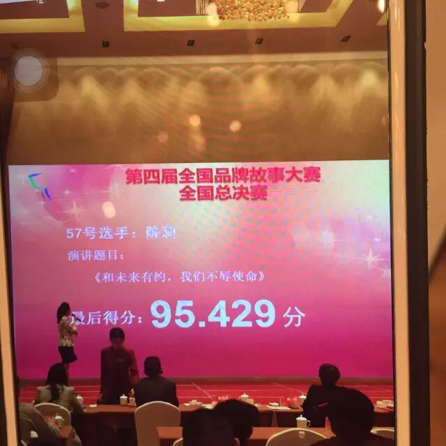 两天后,她和搭档帅洁以完美的表现征服了现场所有评委的心,更是赢得了全场观众最热烈的掌声,她们代表深圳和宏实业股份有限公司获得了95.429的分数夺得了第四届全国品牌故事大赛总决赛的第一名!与她们站在第一阵营的还有大名鼎鼎的东阿阿股、上海龙凤中式服装、中国东方航空和江苏电力。