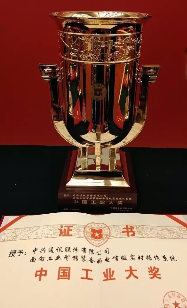 中兴通讯操作系统获工业领域最高奖奖杯图