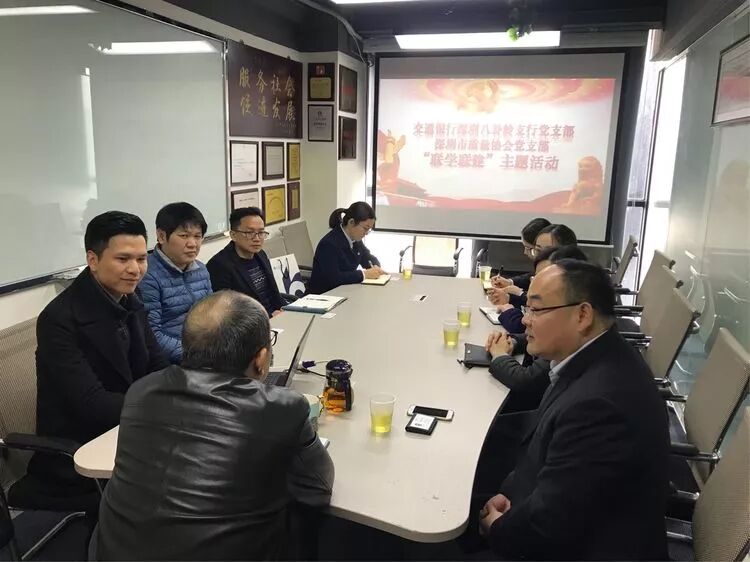 交通银行深圳八卦岭支行党 支部书记吴超同志介绍了支行总体情况、党建工作及交行的党费管理系统,并与质量协会李榕会长和杨涛书记就如何推动"联学联建"取得实效、为协会会员单位提供优质的质量和金融服务满足企业多元化需求深入交换了意见。